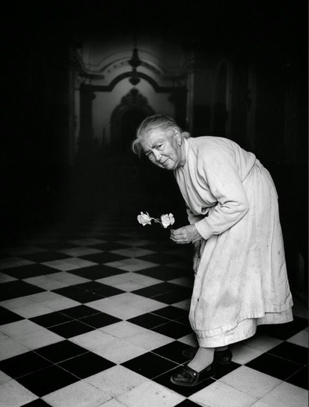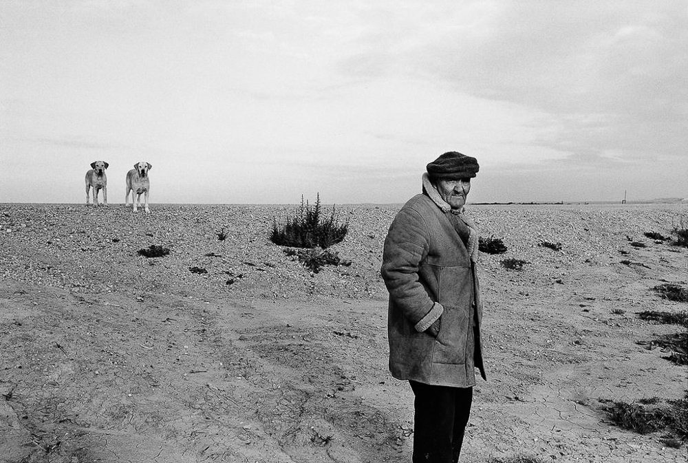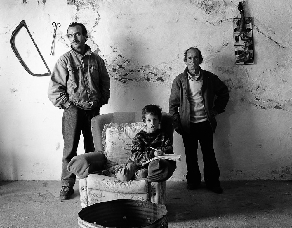 (Un respeto que no impide que algunos retratos de “Paisanos”, como los de “Guarda y sus hermanos”, tomada en Castellar de la Frontera en septiembre de 2002 o la de los pastores retirados Emiliano y Francisco, tomada en Fuenteheridos en octubre de 2002, ambas aquí arriba, nos evoquen el recuerdo de la galería de personajes anómalos y perturbados de Diane Arbus, pues el territorio fotográfico de Atín Aya, su “Macondo”, estaba bien poblado de personajes castigados y aturdidos por la inclemencia de sus vidas y sus entornos. Si Arbus pudo acentuar la extravagancia de los suyos revelando la propia agitación y su sufrimiento interiores, en Atín Aya no percibimos en su tratamiento del retrato ninguna intención de subvertir la máscara de sus personajes ni la invitación a que pierdan el control de su propia imagen. Todo lo contrario. En los retratos de Atín Aya –nobles y apacibles: el espejo que refleja la personalidad del propio fotógrafo, tal y como lo recuerdan todos los que lo conocieron- la imagen que se ve y la imagen proyectada no presenta discrepancias.)
