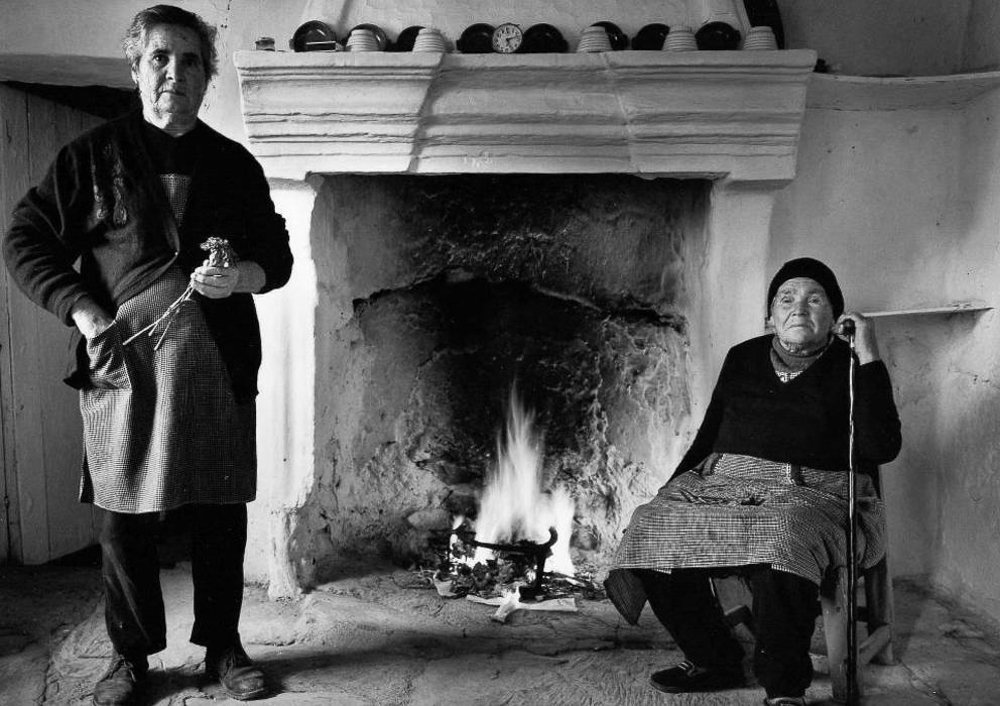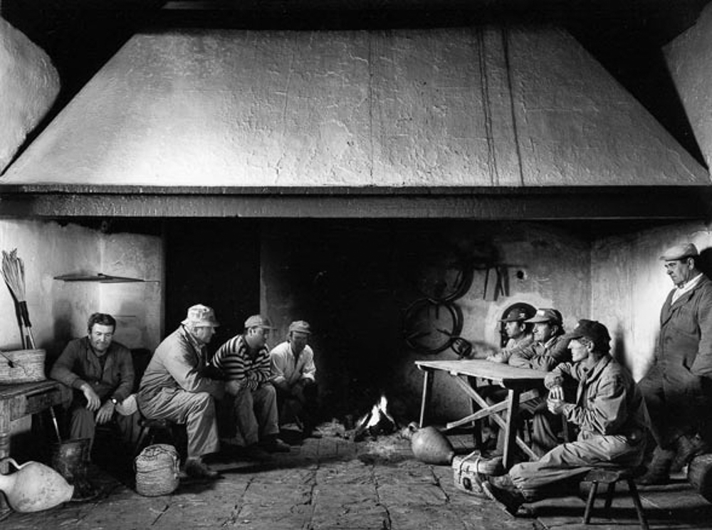Rescatando los espacios subalternos de las casas y las cortijadas, moviéndose entre cocinas, trastos y garages, multiplicando la cualidad orgánica de unos utensilios que no solo informan de un tiempo y una forma de vida sino que contribuyen sustancialmente a delinear la orfebrería de sus personajes pues su vida es su trabajo, Atín Aya, convirtiendo su timidez en una forma de seducción, fotografió a campesinos y jornaleros enmarcándolos en frontales tomas de una dignidad similar a aquella con la que disponían a sus príncipes y reyes los grandes pintores “de aparato”: la elegante disposición de las manos, los cuidadísimos juegos simétricos internos, una aristocrática relajación corporal fruto de muchas horas anteriores de familiaridad y de diálogo y un uso impresionante de las luces naturales velazqueñas y flamencas impregnando las imágenes con la fluida naturalidad de lo que parece haber sido –y no fue- captado espontáneamente. Un prodigio de puestas en escena de latencia neorrealista.